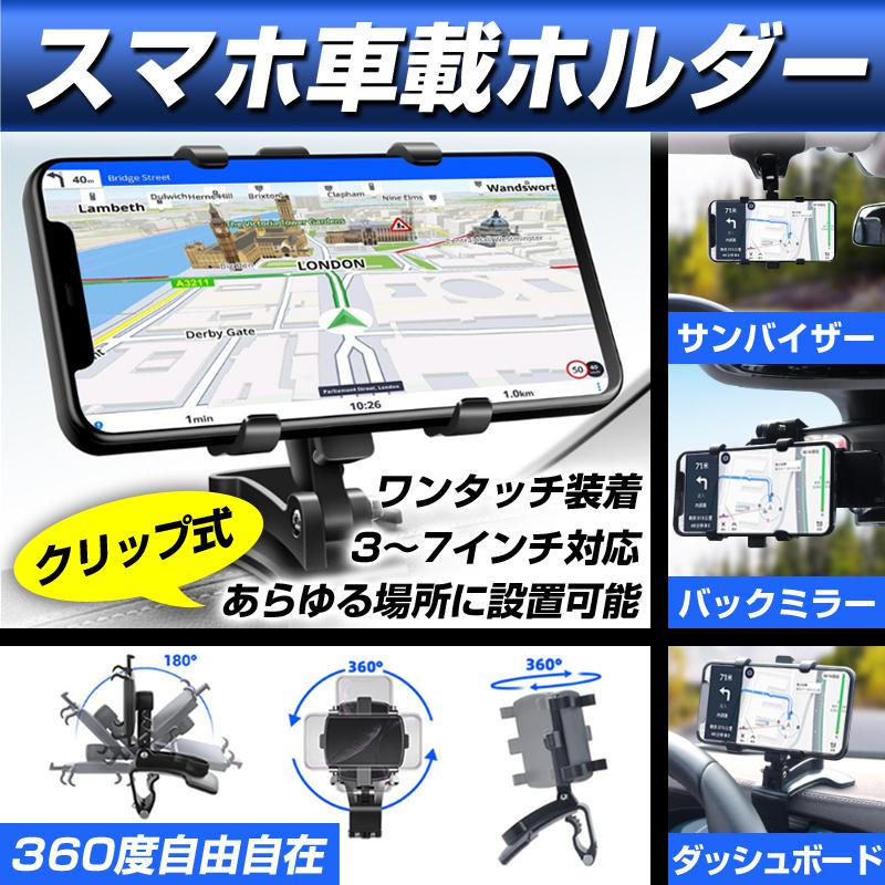 車載用 スマホホルダー 車載ホルダー バックミラー ダッシュボード スマホ クリップ しっかり固定 360 回転 サンバイザーホルダー 車用 固定ホルダー 後部座席 車載 ホルダー クリップ式 スマホスタンド 21年版 取付 車載スタンド スマートフォン 360度 簡単 家内 カー